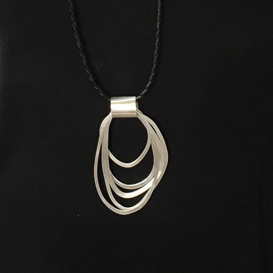 שרשרת אליפסות כסף 925 (סטרלינג) חתום עם רצועת עור שחורה. עדינה עם נוכחות ורושם. שרשרת שתשדרג כל בגד.